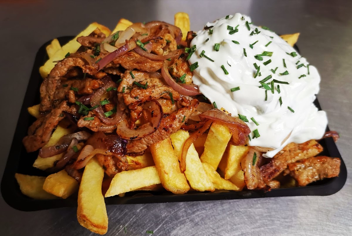 For those who lean towards savory satisfaction, don’t miss out on The Limburgse Sjink — a generous portion of frites topped with "werme sjink" (warm ham), zesty sauce, and crisp vegetables for €10.10. If lighter fare is more your style, the wraps are equally appealing, especially the Wrap döner with flavorful chicken döner and fresh veggies for just €7.00 or the Wrap gyros for only €8.00, each packed with taste and freshness.